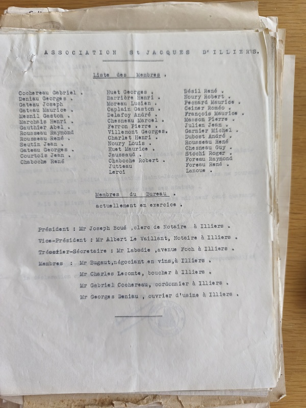Liste des membres et des dirigeants de l'Association Saint-Jacques d'Illiers